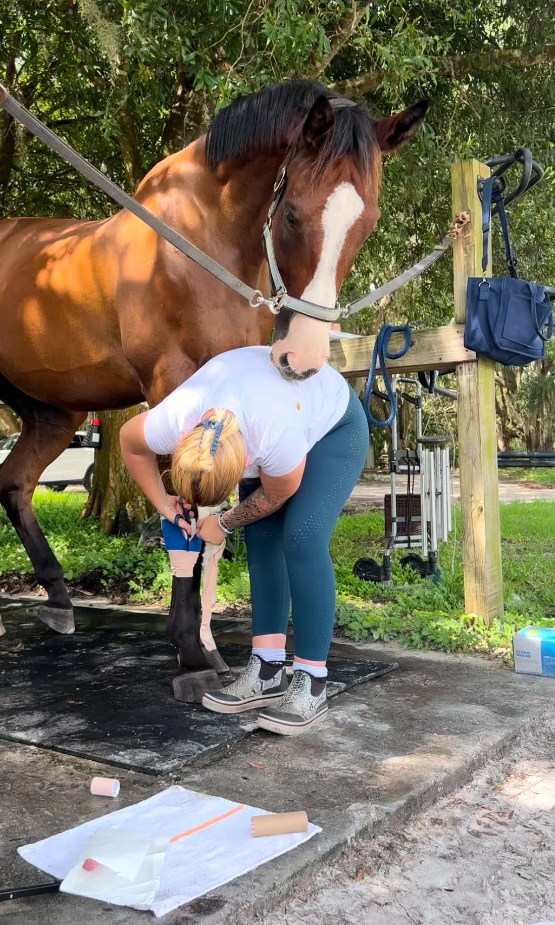 With my certification in Equine First Aid, I can help you navigate a recent injury by assisting in wound care and bandaging as prescribed by your vet.